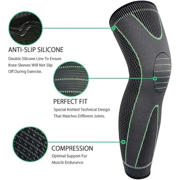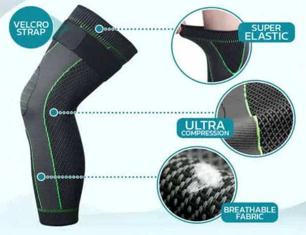 Kompresijski pritisk enakomerno obdaja koleno in stegno, kar zmanjša obremenitev sklepov ter pomaga pri preprečevanju poškodb. Odlično za šport, delo ali vsakodnevno gibanje.